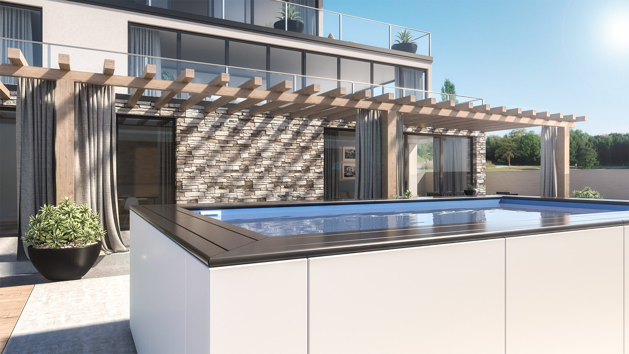 Una piscina fuori terra di design multifunzione